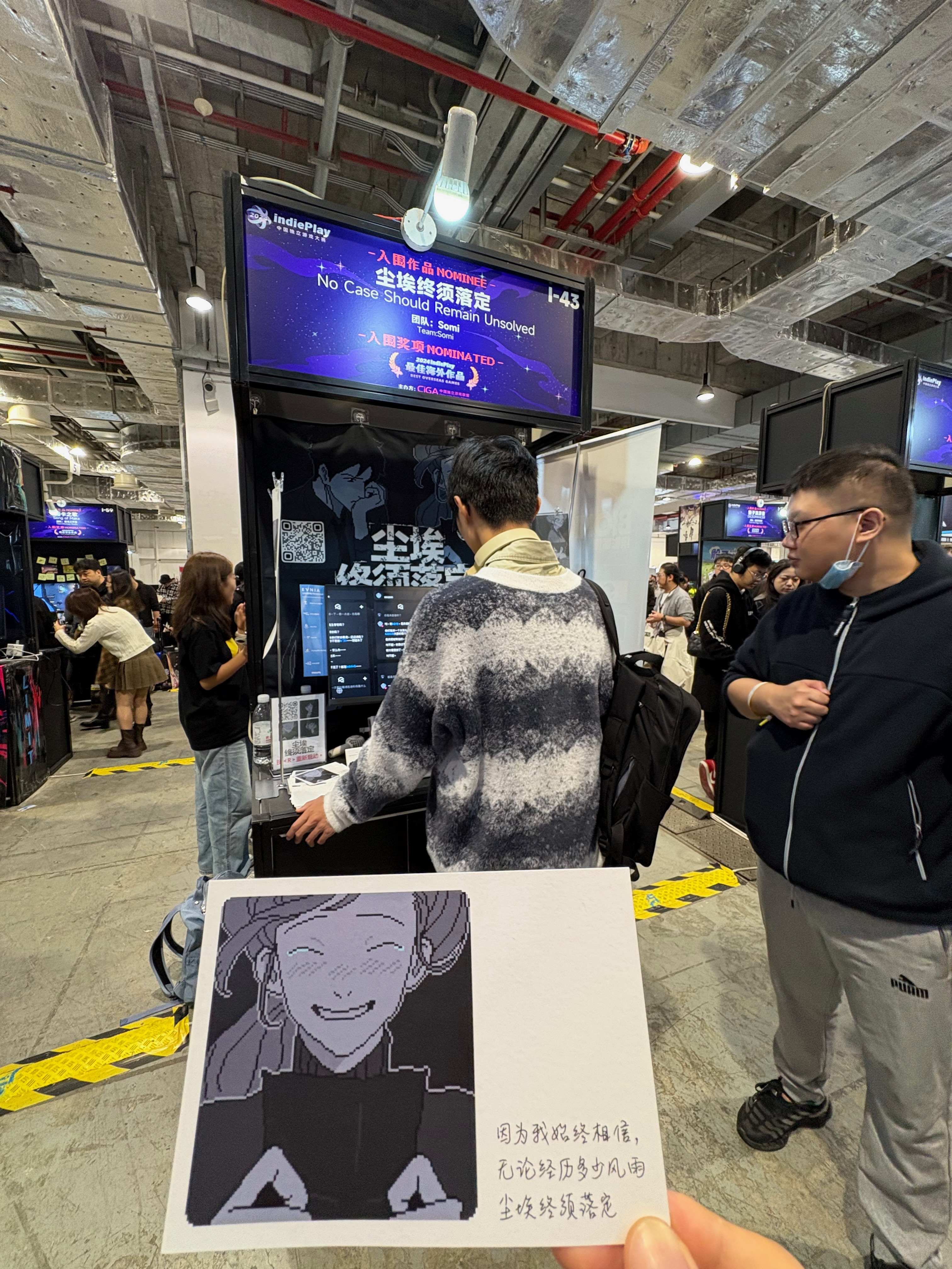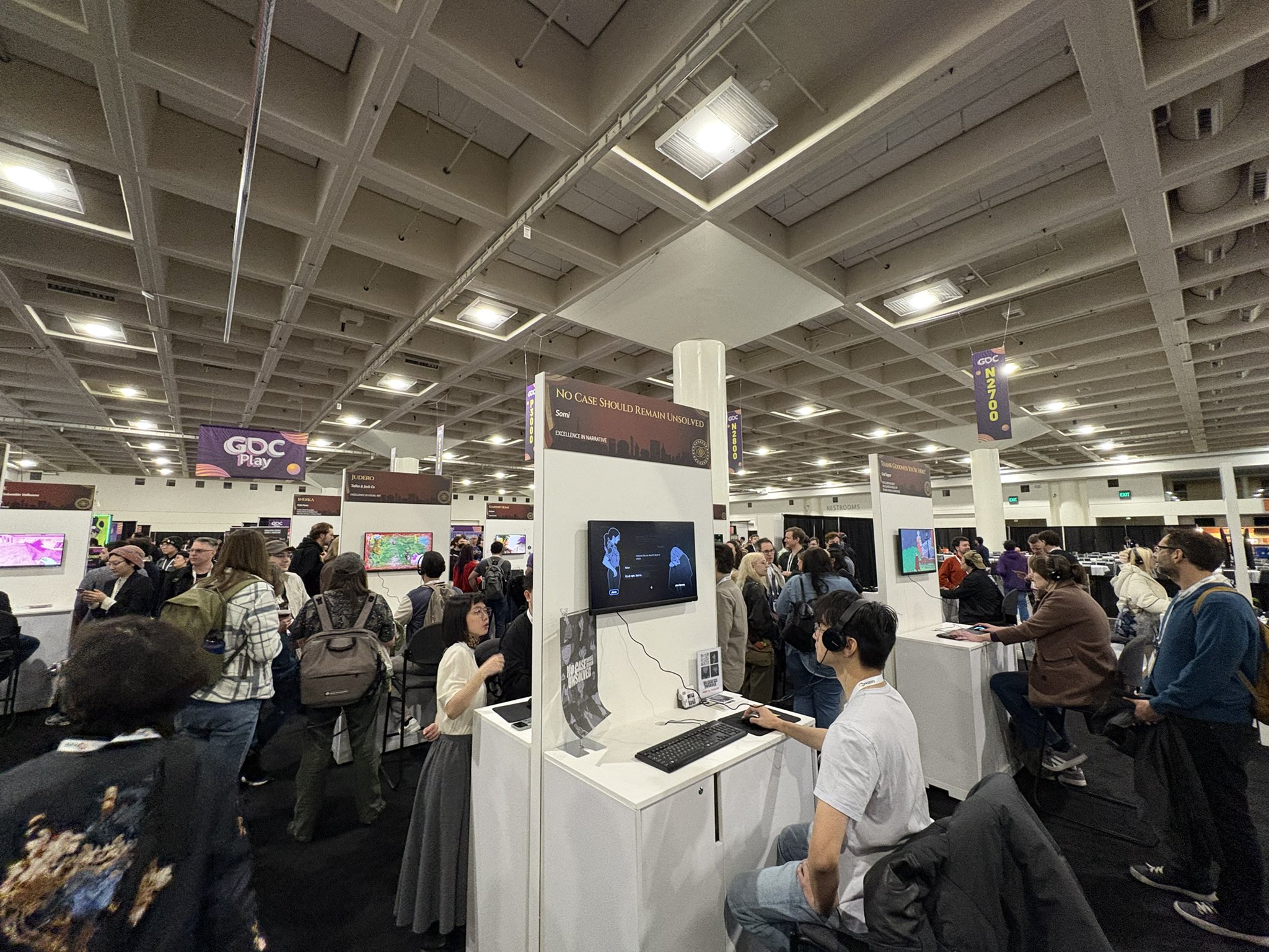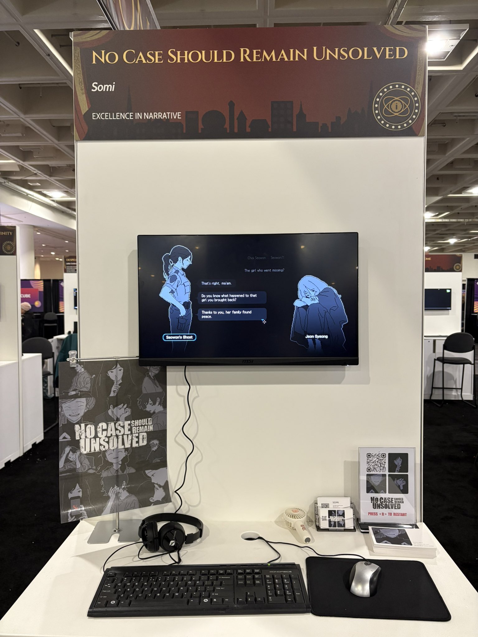 3월 19일부터 21일까지 3일간 미국 샌프란시스코 Moscone Center 내에 위치한 IGF Pavilion에서 ‘미제사건’을 전시했다. 전시된 작품들이 모두 IGF 수상 후보작들인 까닭에 주변에 함께 전시 중인 작품들 중 상당수가 익히 들어보았거나 이미 다른 전시회에서 만나 개발자들과 어울린 경험이 있는 게임들이었다. 내 게임 맞은 편에는 Excellence in Visual Art 부문 후보작이었던 Nine Sols가 전시 중이어서 자연스럽게 Red Candle Games의 Henry와 시간을 많이 보냈는데, Devotion 출시 이후 발생했던 여러가지 어려움을 극복하고 전혀 다른 장르의 새로운 게임으로 도전해 인기를 구가하는 모습에 감탄과 존경을 담아 인사했다.